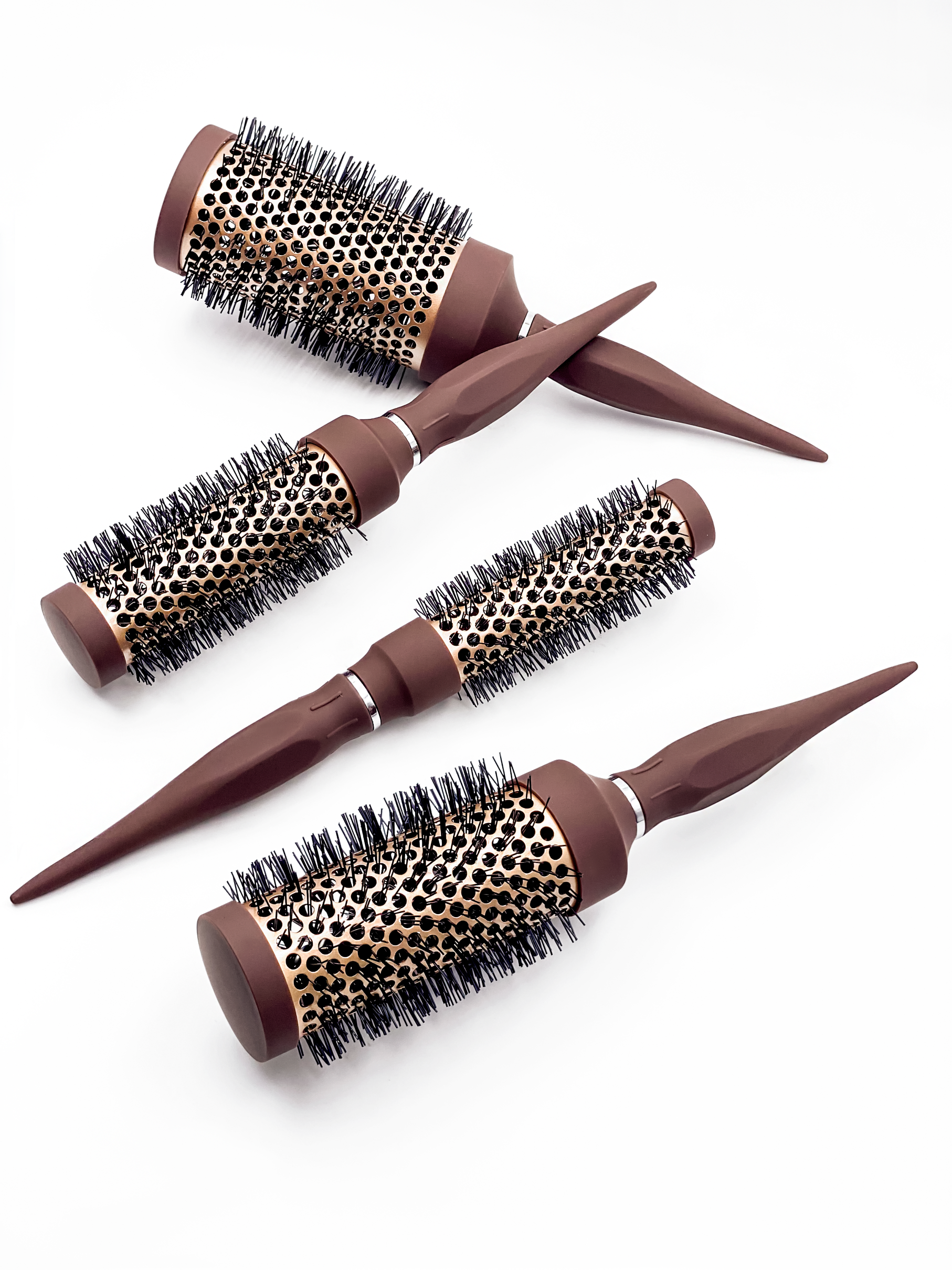 - Blow-Styling : Een ronde borstel is ideaal voor het toevoegen van volume en het creëren van krullen of golven. Begin met één deel van het haar, beginnend bij de wortels en werk naar de punten toe. Plaats de borstel onder het gedeelte bij de haarwortels en richt de föhn langs de haarschacht om de cuticula glad te maken en kroezen te verminderen.